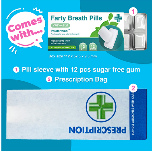 Farty Breath Pills - Parafartamol - Spearmint Chewing Gum Comes - Funny 30th 40th 50th 60th Birthday Gift for Him or Her